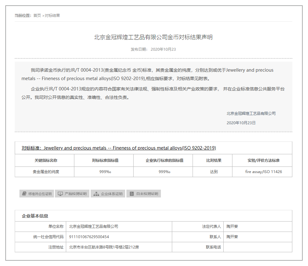 北京金冠辉煌工艺品有限公司成立于2004年。主要订制和销售金银制品、金属制品、集币中心、木艺包装等产品。本着集设计、订制、销售为一体的经营机制。曾荣获2013年度 “中国品牌榜-工艺品行业十大品牌企业”。2016年我公司产品通过 JR/T 0004-2013《贵金属纪念币 金币》;JR/T 0005-2013《贵金属纪念币 银币》中国企业产品质量信息标准。并在2020年通过中国标准化最高等级蓝色db对标达标标志,并可行使该标志。由中国质量新闻网举办的2017-2019年度质量品牌先锋活动中获得 “质量先锋展示产品” 的荣誉。多年来服务合作于北京各机关部门、企事单位、科研教育机构、人民团体等,主要客户群体涉及全国其它地区省份。
